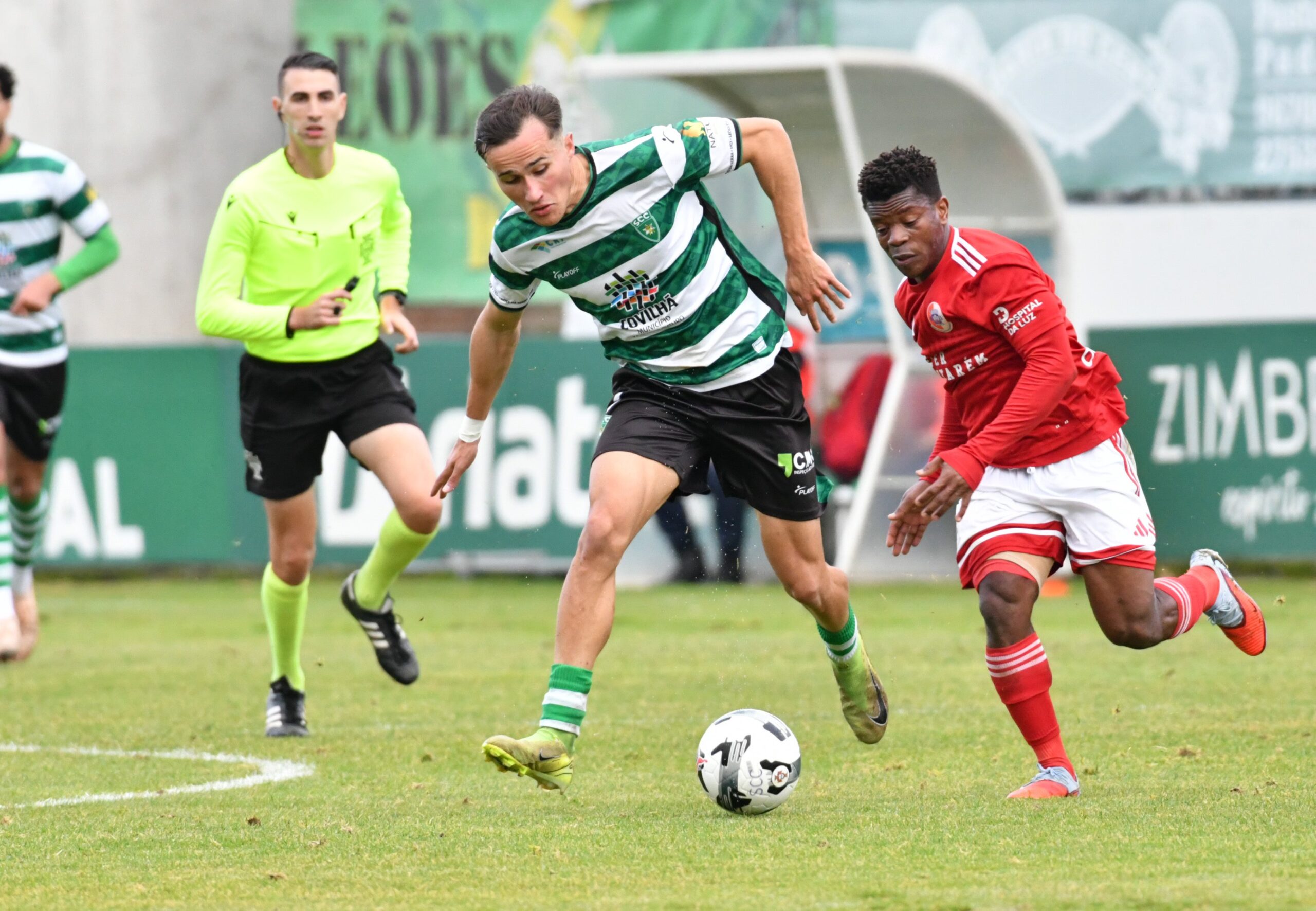A primeira etapa foi marcada pelo equilíbrio. O Covilhã, com os brasileiros Gustavo Galil (goleiro), Tiago Caveira (zagueiro) e Alison Calegari (zagueiro) como titulares, começou mais agressivo. No entanto, o União de Santarém, que contou com o atacante brasileiro Ébert no onze inicial, abriu o placar aos 39 minutos. Após Ébert ser derrubado na área, Marco Grilo cobrou pênalti com categoria e fez 1 a 0. O Covilhã tentou reagir, mas foi para o intervalo em desvantagem.