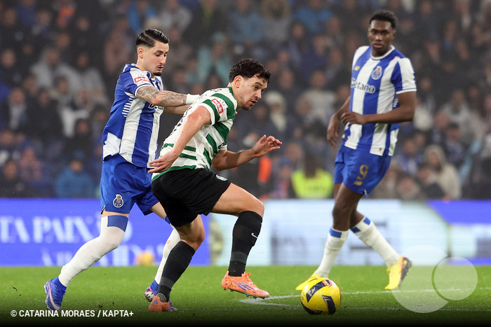 Já o Sporting, no tempo em que teve a bola, mostrou sua clara qualidade. O problema é que a equipe abdicou muito do jogo ofensivo e teve dificuldades para superar a pressão dos Dragões, apelando para lançamentos e chutões.